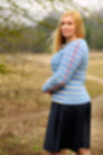 1. Measure the length of your project sleeves using the finished body. Knit the body (back and front(s)), wash and block, join shoulders, sew the side seams, and put on. Stand near the full-length mirror, let your arms hang down along the body. Mark the desired length of the sleeve (it does not matter whether it's a long sleeve or shortened) with a locking marker or a pin on the body. See pics below.