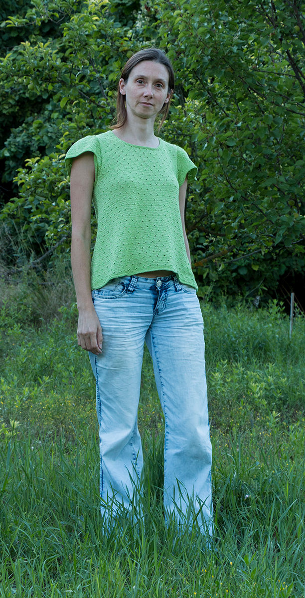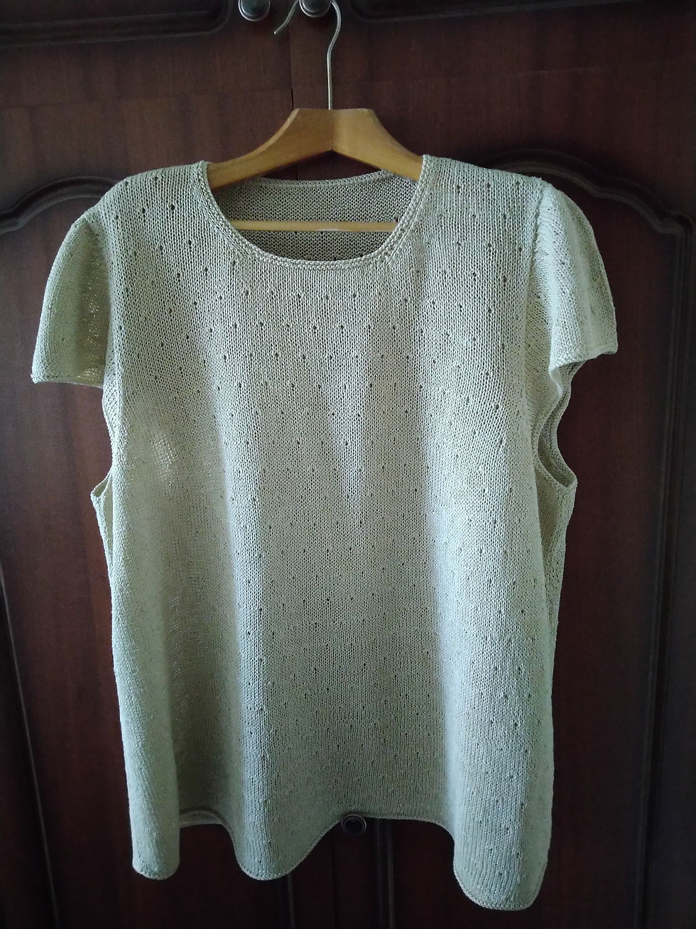 Итогом я довольна, ну разве что пройма по спинке широко для меня вынута. Мне бы поменьше, наверное, надо. Теперь можно окончательно прятать ниточки и ждать новой порции лета.