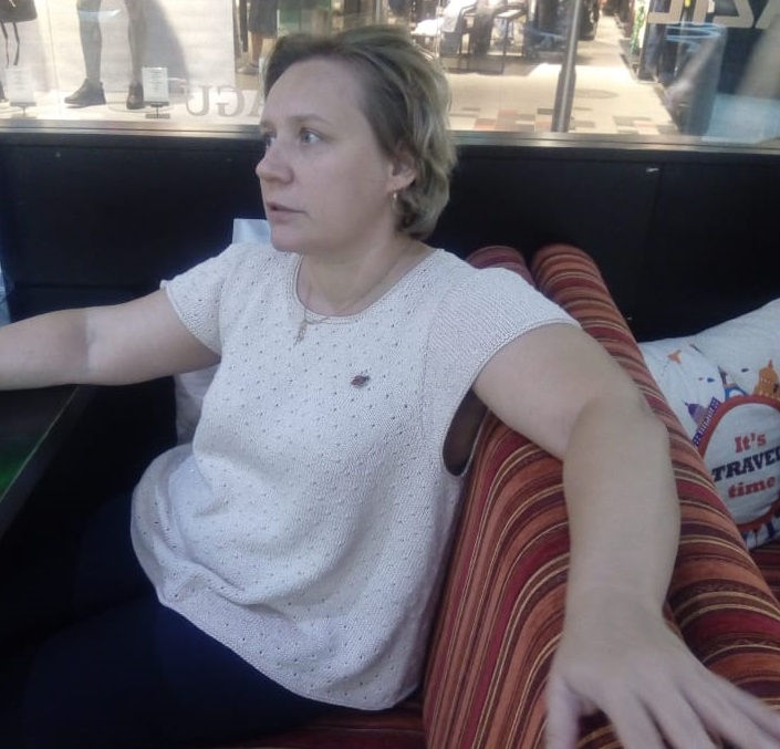 Добрый день всем! Я тоже несколько дней назад закончила свой Airy. Ниток не хватало на обвязку горловины, нашла несколько метров другого льна похожего цвета, достала все хвостики из мусорки, навязала узлов и вперёд