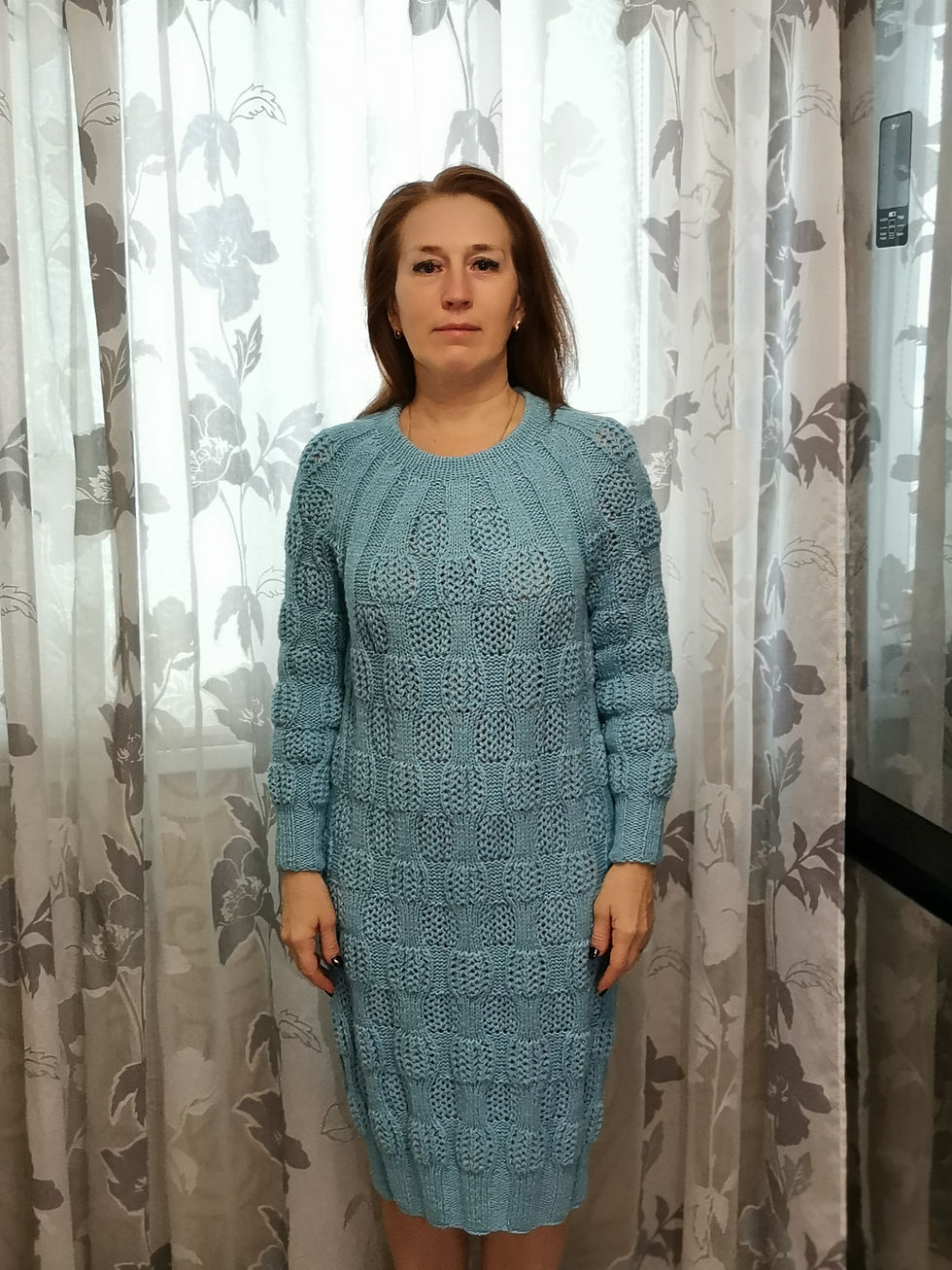 Какая же красивая Сосулька в виде платья! 😍 Елена, очень вам идет! И цвет, и фасон, и село по фигуре отлично! Девочки, какие же вы молодцы, что придумываете идеи разных воплощений моделей Айсте! Так здорово увидеть и базовую модель, и разные придумки. Особенно ценно это для тех, у кого с воображением и фантазией не такая сильная дружба (это я про себя 😄) Спасибо Айсте, что разрешает в рамках тестирования воплощать идеи в жизнь! 🤗 Моя Сосулька готова. Сушится второй день :) По описанию больше замечаний нет. Разве что когда в ночи вязала кокетку и увидела на своей спинке два шарика, а в описании на манекене три🤔, со страху чуть не распустила все 😲потом вспомнила, что Айсте перевязывала Сосульку, догадалась полистать описание и увидела, что на спинке Айсте шарика тоже два 😅