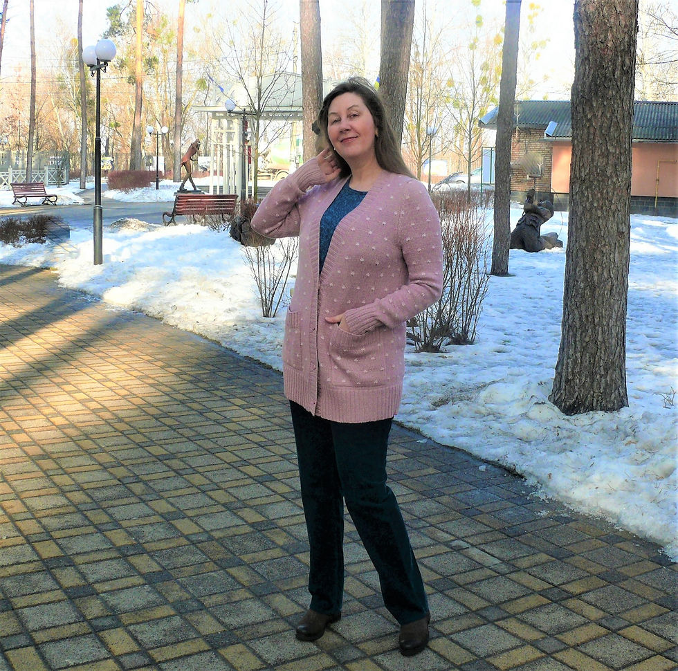 Альбина, очень красиво! Цвет выбран в десяточку, получился кардиган для весны и лета (да и зимой будет удобен под верхнюю одежду). У вас уже так тепло! А у нас под занавес зимы завернули морозы ниже 25, местами до 40, да с очень сильными, почти ураганными ветрами. В таком весеннем виде не пощеголяешь😄