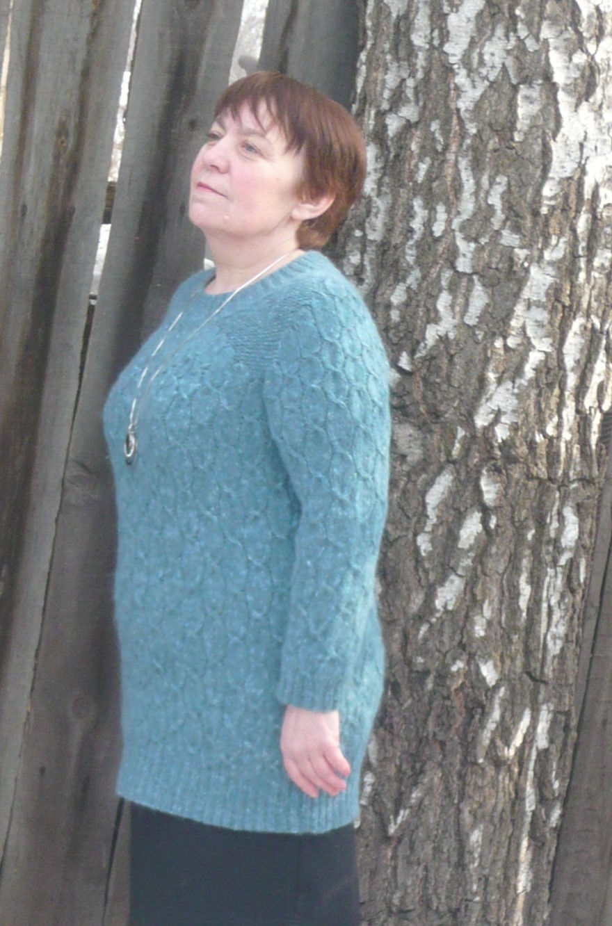 Добрый день,ласточки и Айсте! Я с запоздавшим отчетом.для меня вязание "Waterfall" было чистой поэзией! Я просто получала удовольствие от узора, от того, что получается.Как настоящий поэт, я вязала один вариант,потом у меня закончилась пряжа - на кокетке- и отложила в сторону связанное,связала вариант второй, потому что хотела именно длинный теплый свитер. Наконец-то мне понравилось сшивать - я не чувствовала, как раньше,дискомфорта от процесса.Закрытие петель иглой вообще как песня спелось. Убавила количество рапортов на рукаве,в остальном без изменений.Спицы №6 для основного полотна, для резинки - 4. Пряжа -твид из старых запасов плюс мохер.На вид как голубая ель.Теплый-претеплый. Как раз свитер для поездки на дачу, где можно просто гулять в нем, не опасаясь снова заболеть. Айсте, спасибо за модель.Девочки, вас благодарю за вдохновение, которое черпала из ваших показов.Вы просто все волшебницы.Фото(клик по первой фотографии) больше на Равелри.