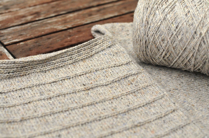 Но причина, по которой я объединила рассказы о двух дизайнах в один, это не нехватка времени, а их общий узор горизонтальной цепочки. Этот узор впервые встретился мне в дизайне Хельги Исагер Lemon. Очень милый и минималистический узор там имел один недостаток. Если вязать по описанию и не делать каких-либо корректировок, полотно начинало косить, теряя одну петлю в начале косички и приобретая в конце. Мой Lemon так и связан с косой вставкой, но косина в конечном изделии после стирки не чувствовалась. Я только уже позже разобралась, в чем причина и немного поправила узор.